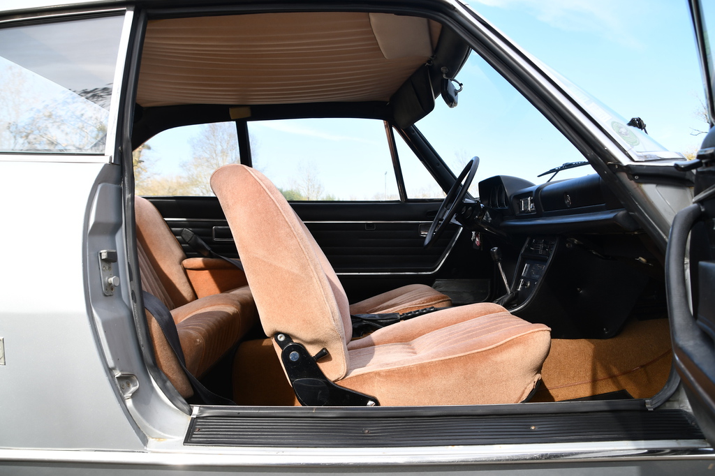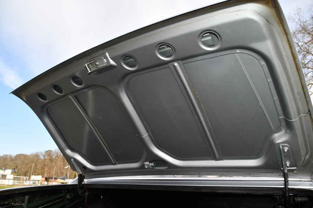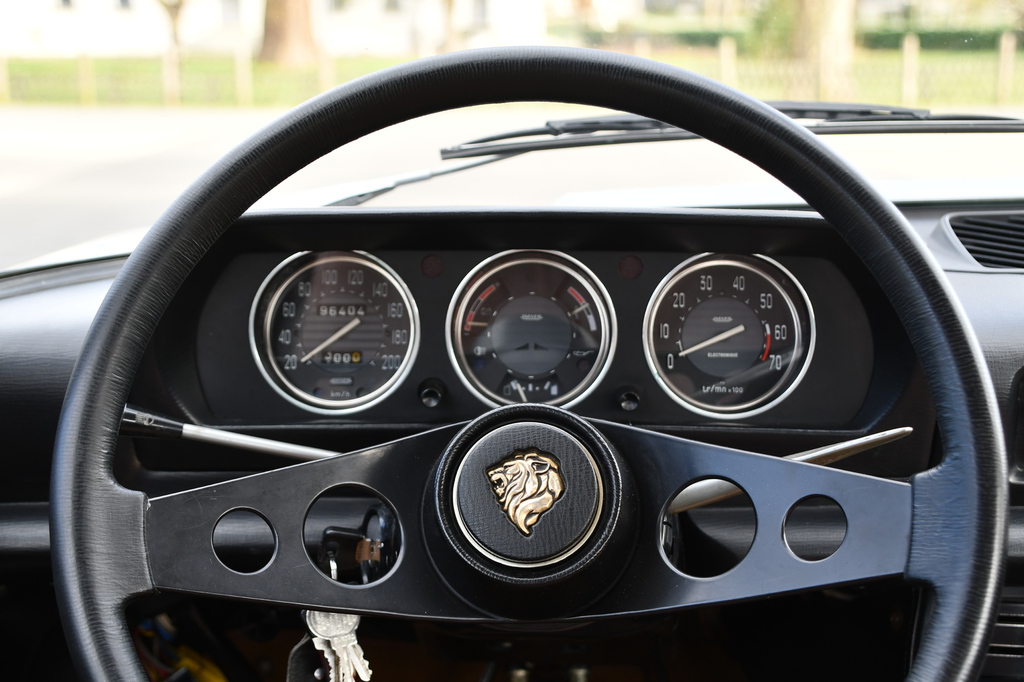 Cette 504 ne devrait pas vous laisser indifférent, en effet cette première génération arbore une peinture gris  métallisée en parfait état qui lui donne tout son éclat, un intérieur velours très accueillant invite également à gouter à la nostalgie des voitures de collection.  Les soubassements sont impeccables et le fonctionnement du moteur très agréable.