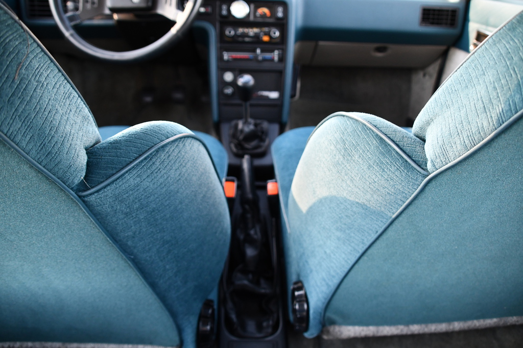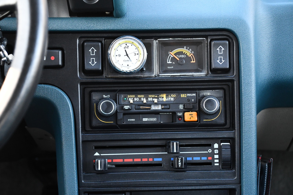 son style et l'univers rétro qu'elle dégage, le bleu Océan de la peinture, l'intérieur velours, la planche de bord bleue ou encore l'aiguille du Turbo rappelle les année 80.